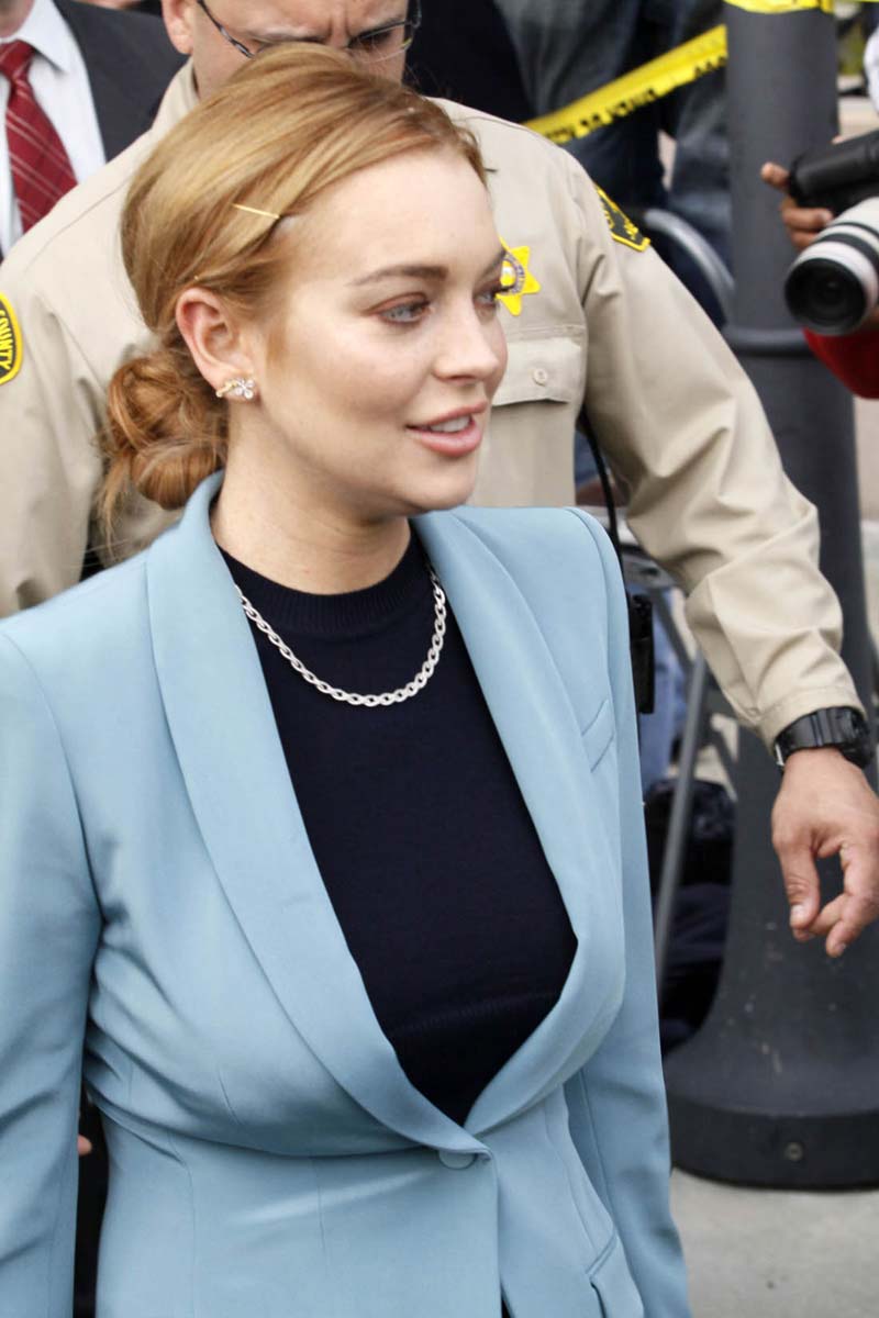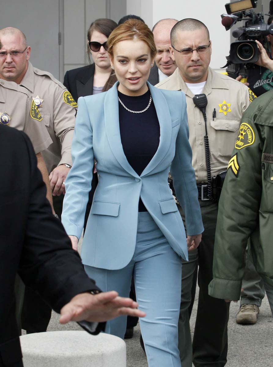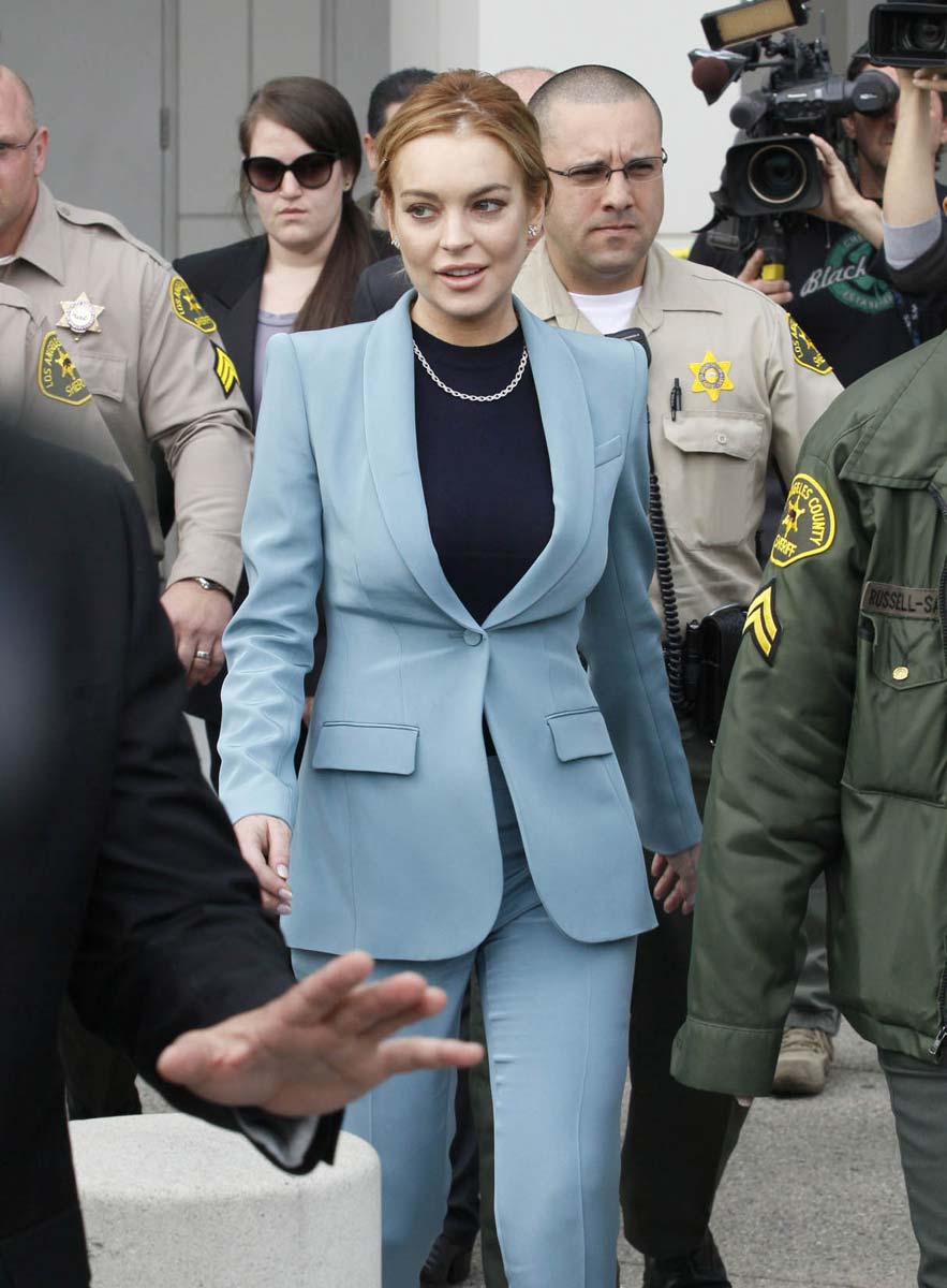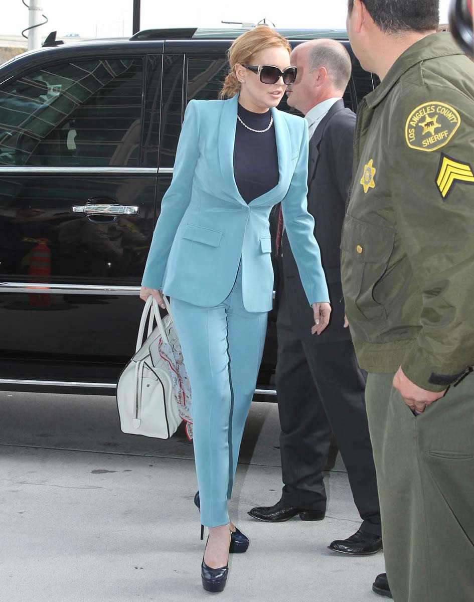 Lindsay Lohan finished her probation and can finally get things back on track. Here are some pictures of Lindsay at her last court appearance yesterday, at least she hopes it was her last appearance, until she fuck up again… I hope it will not, at least not in the near future, I hope that we will finally be able to see again some quality girl on girl action. Anyhow, I really like her sexy blue business suit, she looks like one of those sexy lady lawyers you’d see in a TV show from the seventies. I’ll miss in some way her sexy appearances at the court…