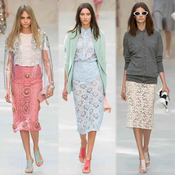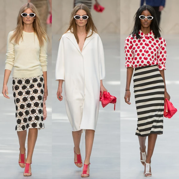 Η νέα συλλογή του οίκου Burberry Prorsum είχε όλα όσα έπρεπε: μελωδική μουσική, τα χαρακτηριστικά trench coats, rose petals - κομφετί στο φινάλε του show αλλά και την Cara Delevingne στο catwalk. Παστέλ αποχρώσεις «έντυσαν» ρομαντικά δαντελωτά φορέματα και pencil φούστες. Suede παλτό σε ταμπά απόχρωση και γκρι ζακέτες ολοκλήρωσαν τη ρομαντική και relaxed συλλογή του οίκου, ενώ φέτος, οι κλασικές καμπαρντίνες ακολούθησαν την τάση του oversized. Σε συνέχεια της προήγουμενης σεζόν, ο Chistopher Bailey αποδεικνύει πως ξέρει πολύ καλά να δημιουργεί fashion statements, κάτι που επιβεβαώσαν τα πουά prints σε συνδυασμό με ρίγες.